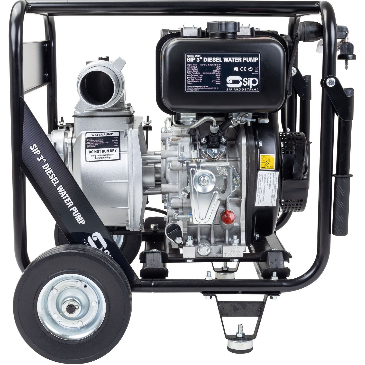 Featuring a high max. flow rate of 1000ltr/min for effective water pumping head and 30mtr max. pumping head for greater water clearance, this machine also includes a wheel-mounted open frame design with pull handles for easy movement between locations.