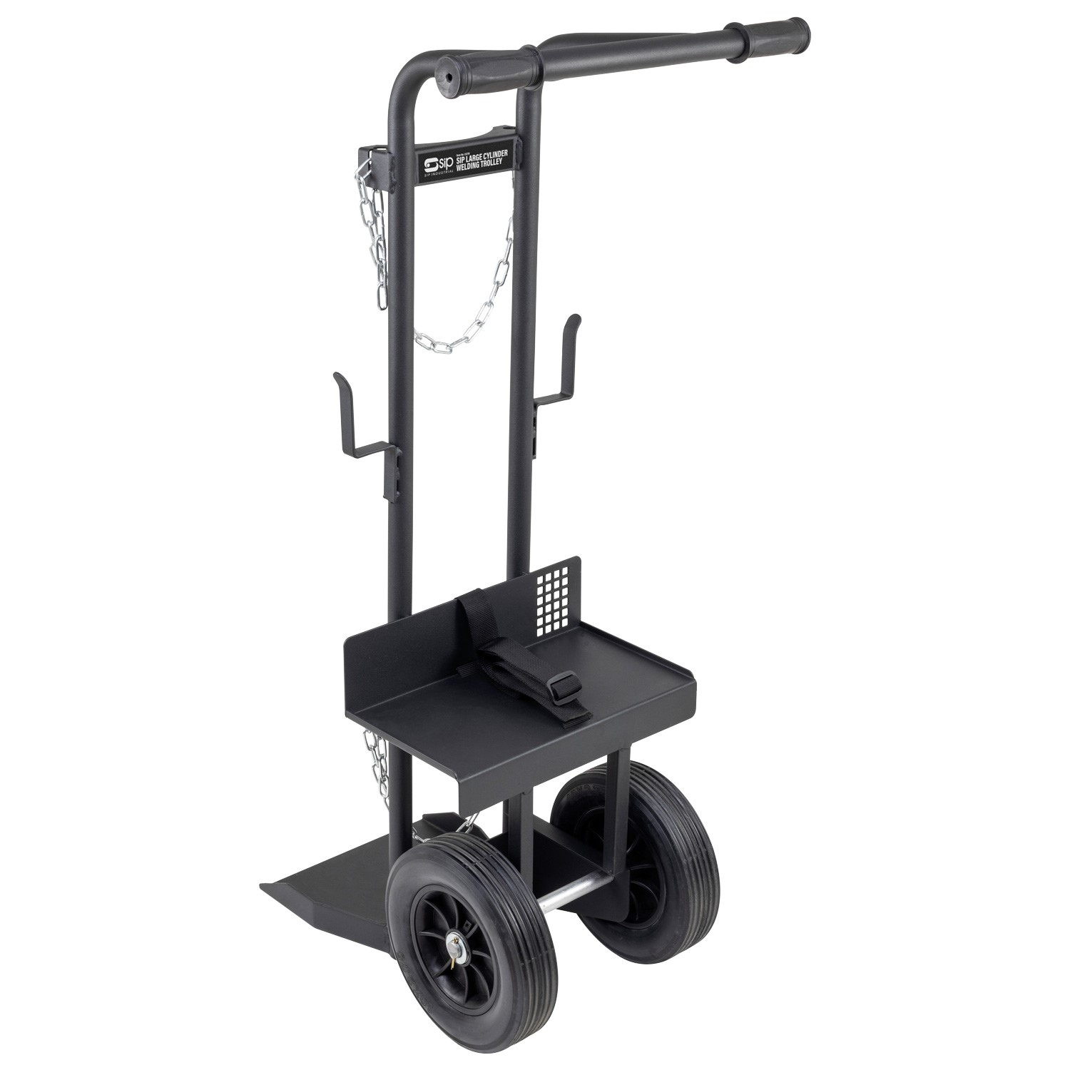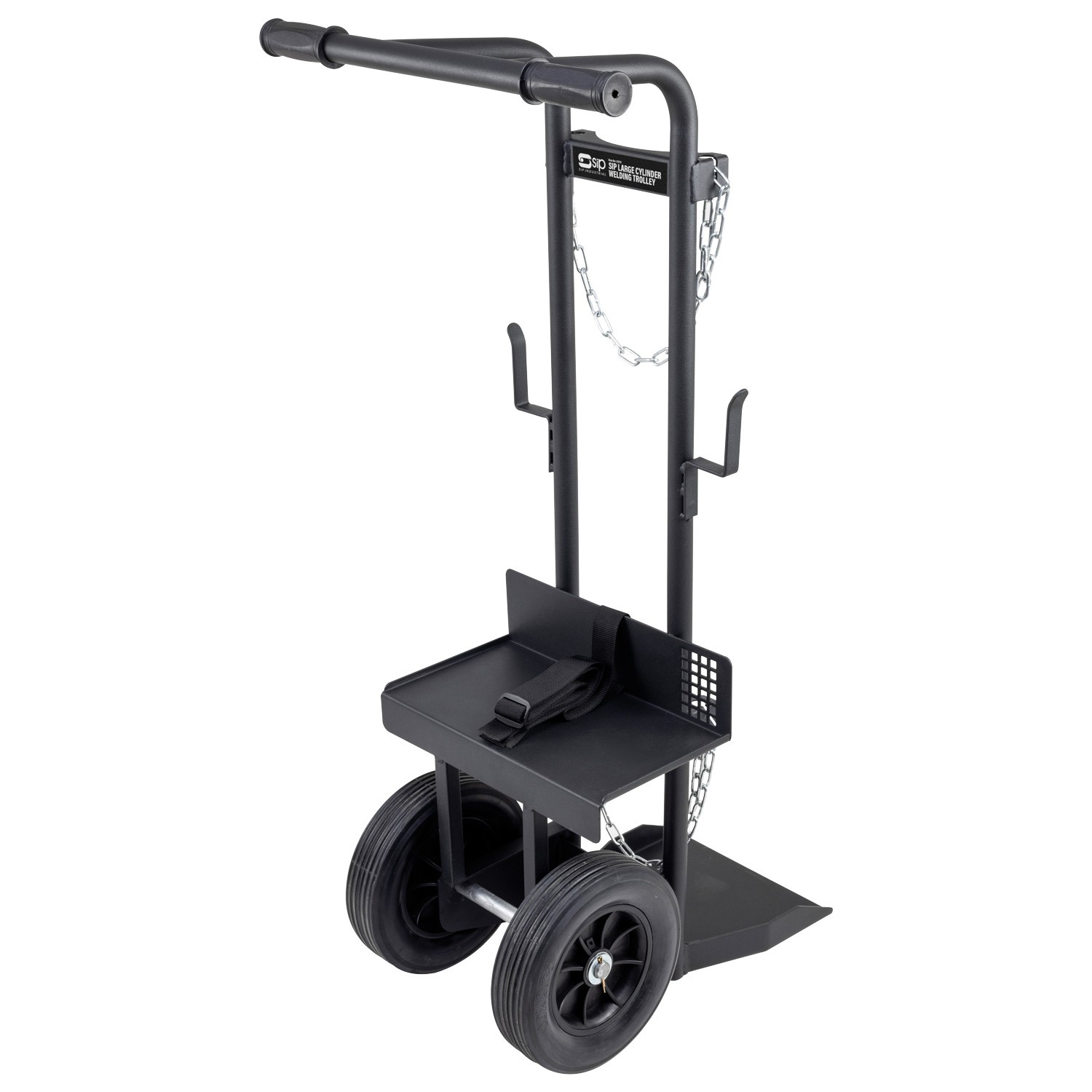 The SIP Large Cylinder Welding Trolley is compatible with all WELDMATE® AUTOPLUS and WELDMATE® PRO Welders. With a wheel-mounted and all-steel design including rear-facing footplate, it can hold larger gas cylinders up to 99kg.