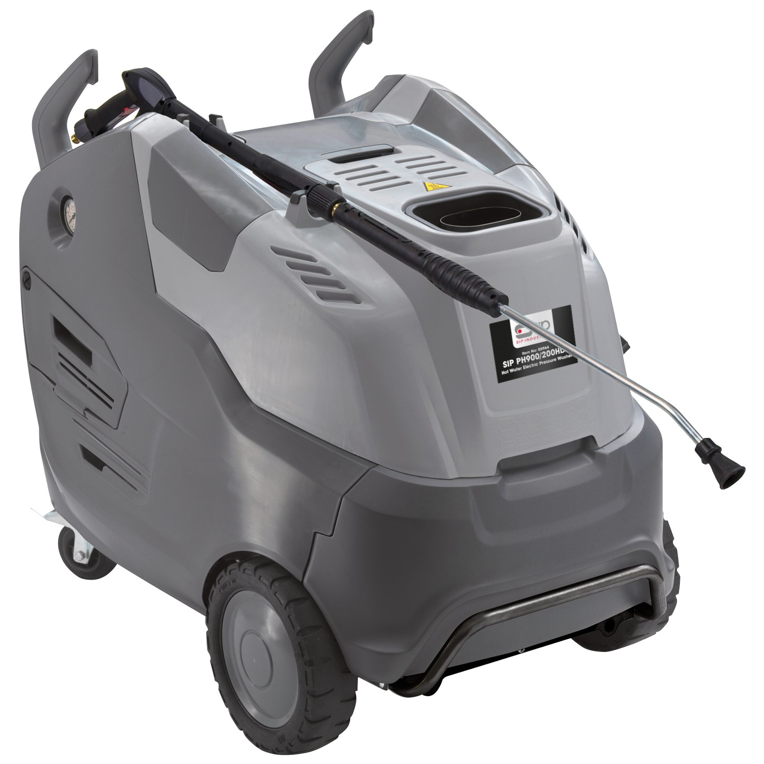 The SIP TEMPEST PH900/200HDS Hot Water & Steam Electric Pressure Washer combines a 140°C output temperature with a brass-headed Triplex crankshaft pump, and low pressure detergent suction to handle the most stubborn cleaning.